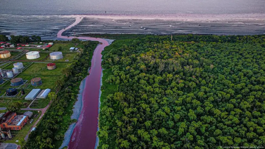 وأظهرت صور ومقاطع فيديو لمجرى سارندي، الذي يتدفق إلى مصب نهر ريو دي لا بلاتا، التغير المفاجئ في اللون.