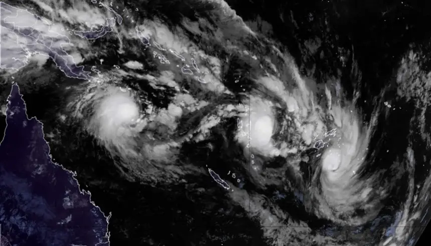 تشهد منطقة جنوب المحيط الهادي حالياً تشكل ثلاثة أعاصير مدارية في وقت واحد، وهي راي وسيرو وألفريد، وذلك بالتزامن مع ذروة موسم الأعاصير الذي يستمر من نوفمبر حتى أبريل. وتُعد هذه الظاهرة من الفترات النشطة في المنطقة، رغم أنها ليست غير مسبوقة.