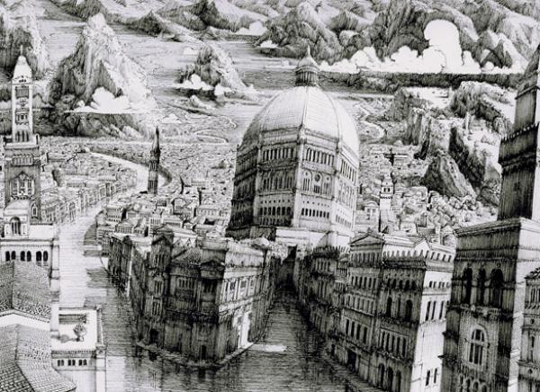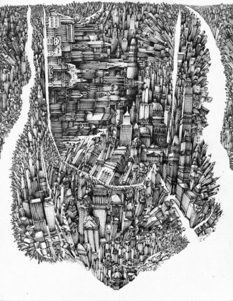 وتمتد رسوم ساك بطبيعة الحال على مساحة واسعة من الورق ليحقق بذلك مشهد المدينة الكاملة، في تصاميم هندسية مختلفة، منها ما يمثل فترات زمنية معينة وأخرى من فانتازيا الحكايات، وتشترك جميعها في كونها أعمالاً فنية صاعقة.