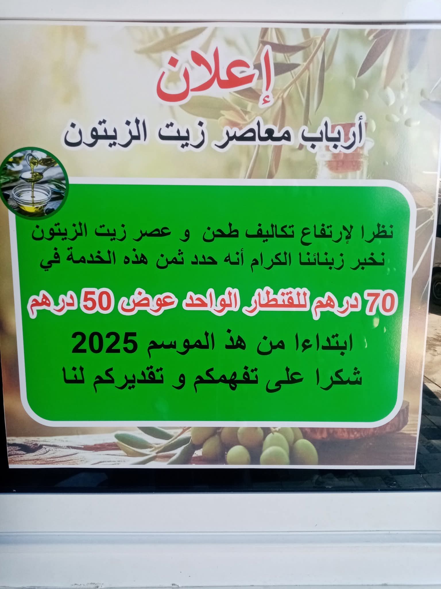 هنا في تازة 20 درهم زيادة على كل قنطار ارباب المعاصر فقط من تلقاء نفسهم اتفقوا على هده الزيادة و المسؤولين في سبات عميق الزيادة سيدفعا المواطن او بالاحرى فرصة للشناقة للرفع من تمن الزيت بدعوى زيادة تمن عصر الزيتون مافهمنا والو فهد البلاد كفاش غادية