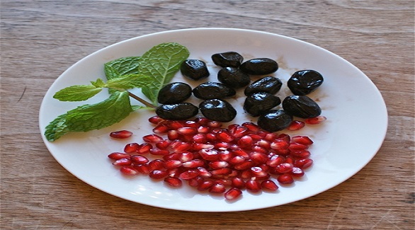 يعطي الرمان نكهة مميزة إن تم تقديمه مع الزيتون حيث يمتزج طعمه الحلو مع طعم الزيتون المالح.