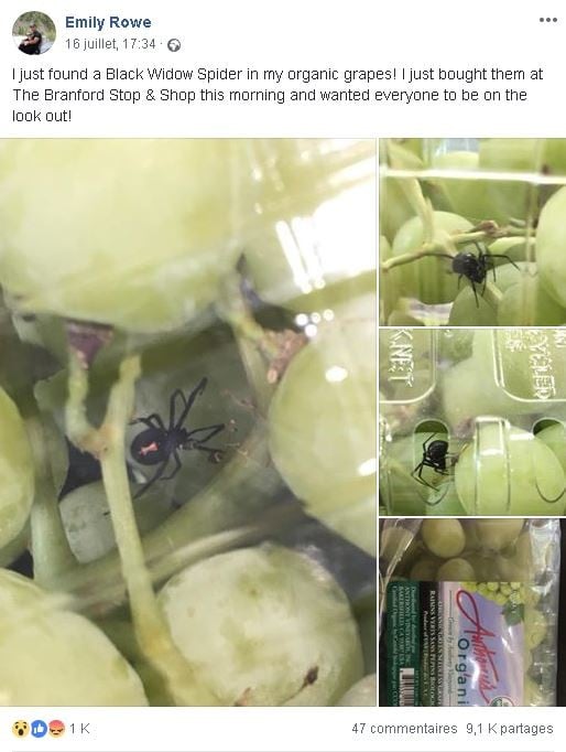 ونشر موقع إن بي سي كونيتيكت أن المواطنة الأمريكية، إميلي رو، أبلغت عن الحادثة في منشورها على صفحتها في الفيسبوك لتحذير الجميع من الحشرات السامة التي يمكن أن تتواجد في الفواكه التي يشترونها.