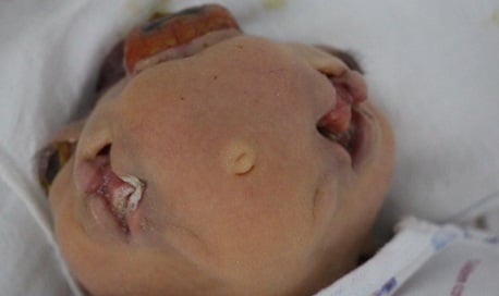 تلقت أم صدمة قوية بعدما تفاجأت بعد الولادة القيصرية برضيع ليس كباقي الأطفال، حيث تبين أن له أربع عيون وفمان.