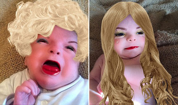 فيما يظهر الرضيع غابرييل البالغ من العمر 7 شهور في صورة أخرى بمؤثرات التطبيق شبيهاُ بمارلين مونرو.