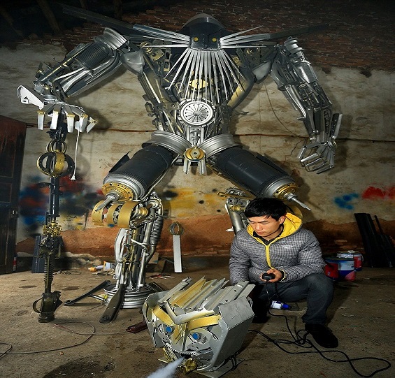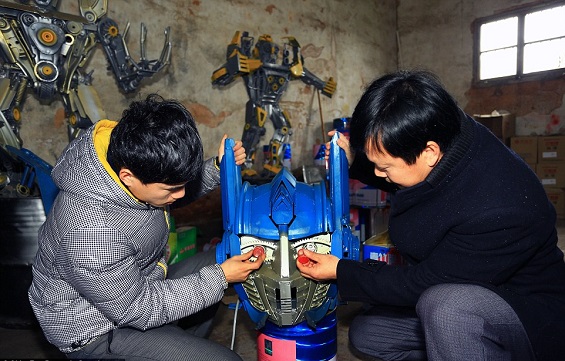 وقالت صحيفة "دايلي ميل" البريطانية إن الفلاح يو زيلين وابنه يو لينغيون قاما بتجميع الحديد من موقف ضخم للسيارات القديمة والمعطلة في مدينة هينغيانغ، قبل أن يبدآ رحلة صنع الروبوت "أوتيموس برايم" والروبوت "بامبلبي"، ونجحا في ذلك إلى درجة أنهما باعا روبوتات بقيمة مقابل أكثر من 160 ألف دولار.