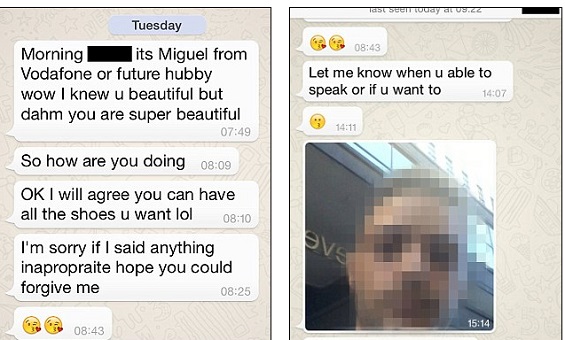 أجرت العميلة البريطانية أديلي بيري التي تقطن في مانشستر محادثة عبر هاتفها الذكي لشركة فودافون لمناقشة مشكلة تتعلق بالفاتورة، ففوجئت بموظف الشركة يتودّد إليها بوابل من الرسائل الغرامية والعبارات غير المناسبة عبر تطبيق المحادثات الشهير "واتس آب".