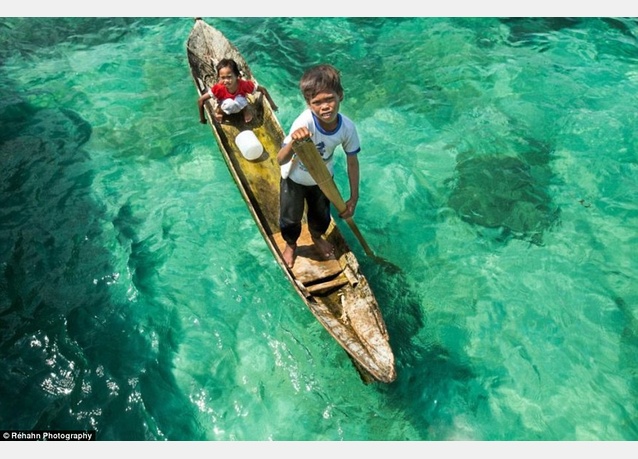 المصور ريهاهن ( Réhahn ) قضى ثمانية أيام بين الأطفال البدو في بورنيو، وتعلم الكثير عن حياتهم المائية الرائعة، جزيرة بورنيو هي ثالث أكبر جزيرة في العالم، وأكبر جزيرة في آسيا تقع في أرخبيل الملايو في مجموعة جزر سوندا الكبرى. سياسياً قسمت الجزيرة ما بين أندونيسيا، ماليزيا وبروناي.