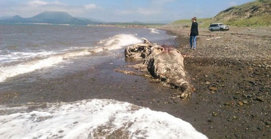بالصور.. ظهور كائن يشبه الديناصور على شواطئ جزيرة سخالين فى روسيا!