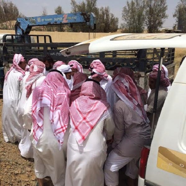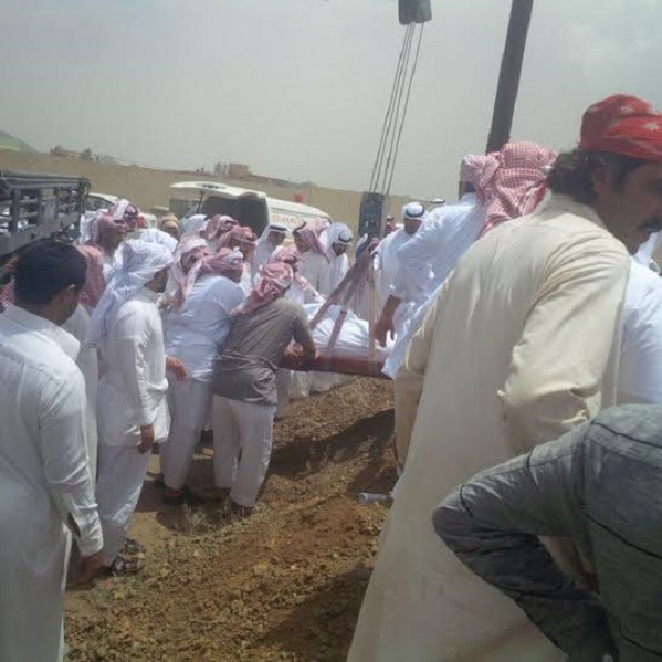 بالصور: عائلة سعودية تلجأ إلى "ونش" لدفن ابنها