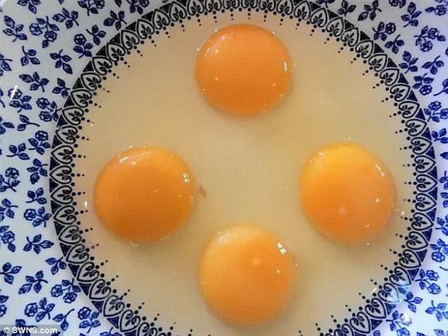 ومن جانبه، قال كيفن كولز بمركز الإعلام البيض البريطاني: “إن فرص وجود بيض بصفار مزدوج يشكل نسبة 0.1 في المائة، لكن العثور على بيضة رباعية هو ظاهرة نادرة جدا في الواقع، بينما قالت الصحيفة إن هذه الواقعة تحدث في واحدة من بين 11 مليون بيضة منتجة.