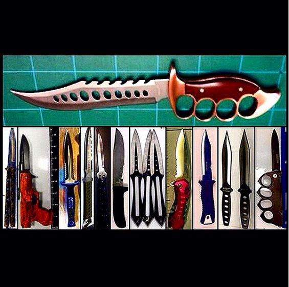 10- مجموعة متنوعة من السكاكين وأخرى على شكل نجوم وقنابل يدوية وسيوف.