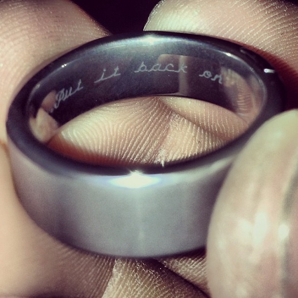 ونشر أحد مستخدمي موقع "إيمغور" للتواصل الاجتماعي صورة للخاتم، وكتب تحتها تعليقاً قال فيه: "حفرت زوجة أحد أعز أصدقائي هذه الرسالة على خاتم زفافه. إنهما يعيشان زواجاً سعيداً للغاية، وهذه الرسالة على سبيل الدعابة فقط".