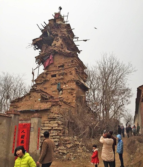 بالصور: مزارع صيني يبني منزلاً من 7 طوابق بالحجارة