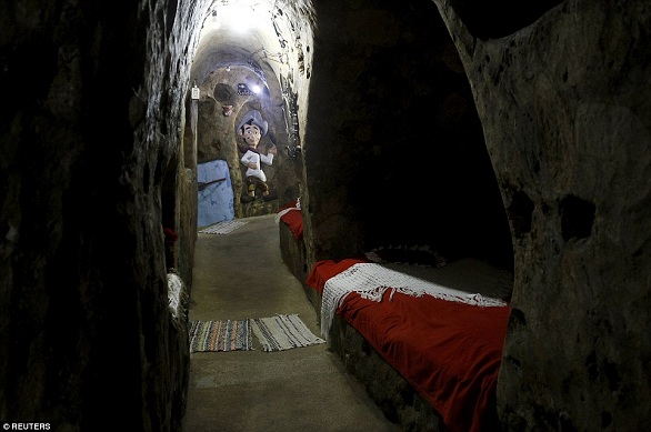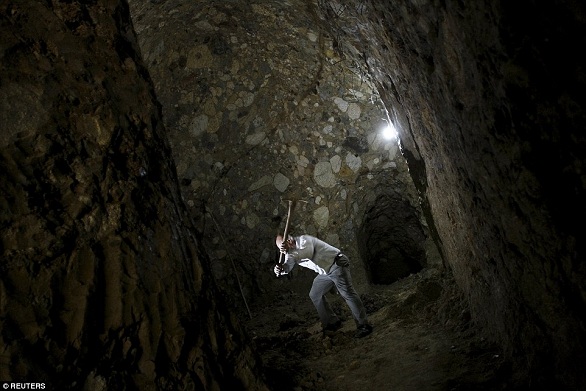 بالصور: رجل يبني منزلاً تحت الأرض بمعول ومجرفة