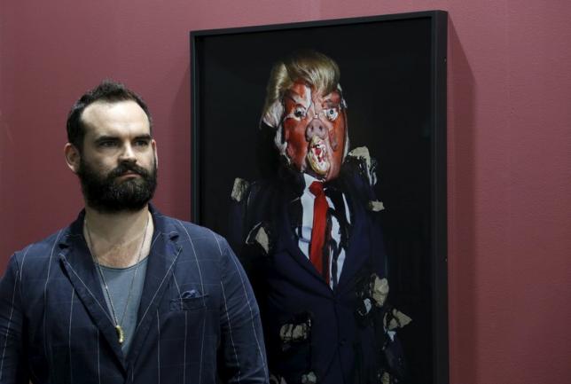 لكن أحدث صيحة في السخرية منه هي استخدام فنان بريطاني قطعاً نيئة من خنزير وخروف لعمل مجسم لترامب بهدف عرضه في معرض فني بهونغ كونغ.