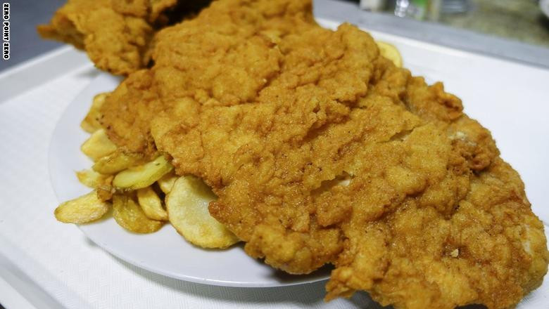 الصورة 2: تغطية اللحوم بفتات الخبز: في هذه الطريقة، يغطى الدجاج أو السمك بفتات الخبز (البقسماط)، ومن ثم يُقلى بالزيت.