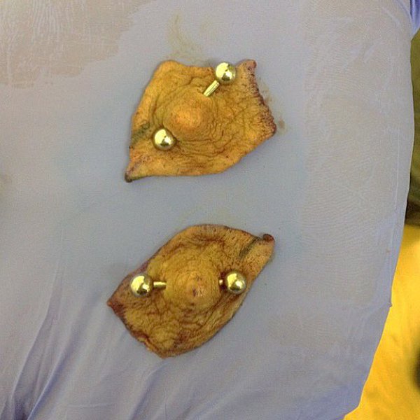 قام فنّان إسباني من أصل مغربي يدعى كريم بوميجيمر ، بإزالة حلمتي صدره و سرة بطنه و عرضهم للبيع على الإنترنت .