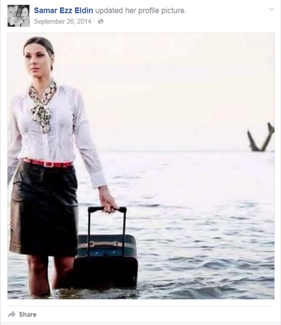 كانت مضيفة الطيران؛ قد نشرت بموقع التواصل الاجتماعي "فيس بوك" صورة في 26 سبتمبر 2014، لمضيفة جوية تجر حقيبتها في البحر وخلفها طائرة محترقة سقطت في البحر، وكأنها كانت تخشي ذلك المصير، الذي كان يطاردها، فبدى الحدث وكأنه حقيقة، رسمتها أيدي القدر، وشعرت بها المضيفة الشابة سمر عز الدين؛ وكأنها كانت تشعر أن هناك شيئًا ما سيحدث لها، لكنها لم تدرك جيدًا ذلك الأمر، ويبدو أن حدثها بات الآن حقيقة، حتى أصبح مصيرها غير معلوم.