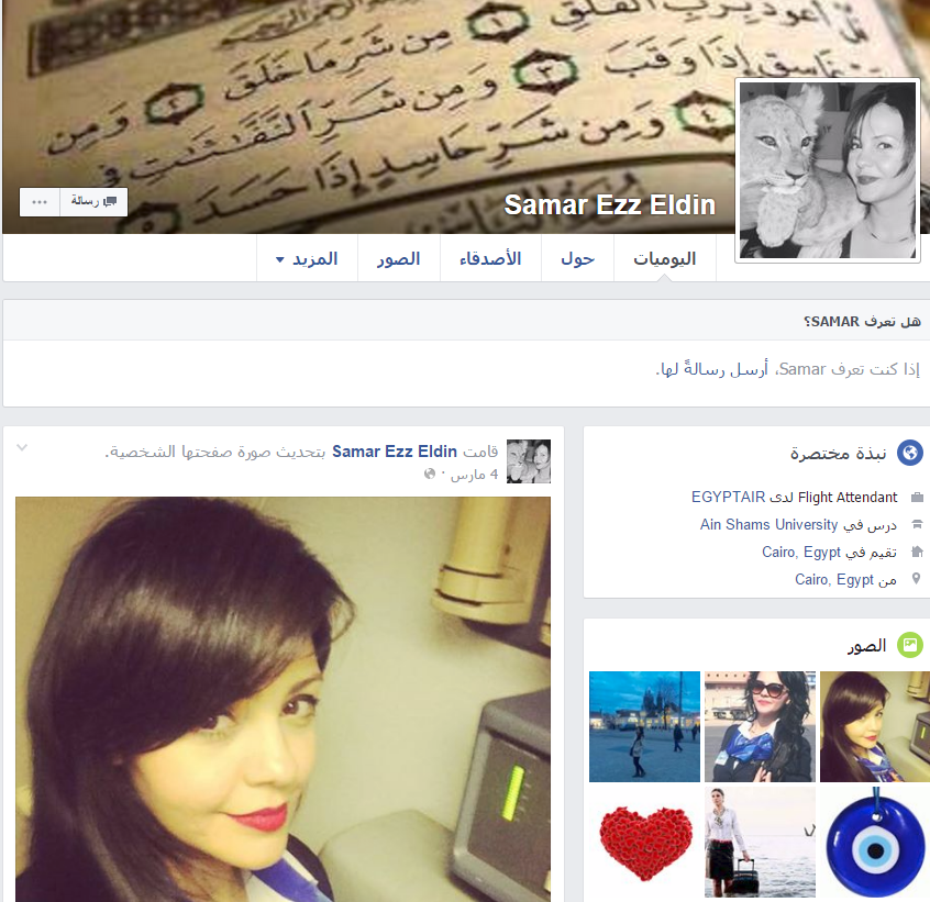 فُقدت سمر اليوم الخميس؛ بعد أن كانت بدأت عملها بشركة مصر للطيران فى مايو عام 2014؛ وحتى الآن مصيرها مجهول، لكن خلال هذين العامين كانت سمر تشعر أنها على موعد مع القدر من خلال عملها بشركة مصر للطيران.