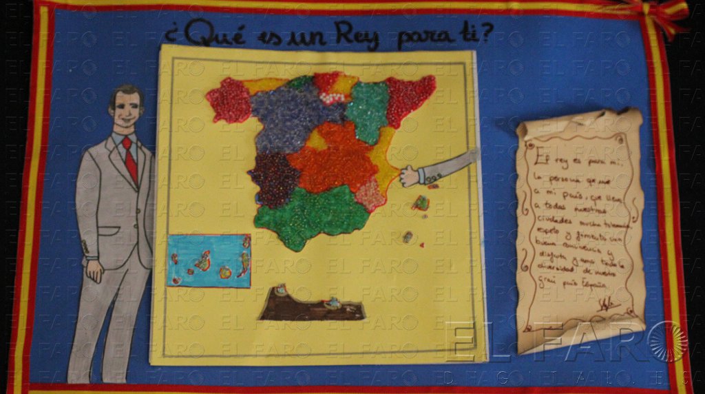 و حسب موقع ايل فارو ديخيتال، فالطفلة المغربية المنحدرة من مدينة مليلية المحتلة، رسمت لوحة فنية، يظهر خلالها العاهل الاسباني يعانق خريطة بلاده حيث خصت لونا معينا لكل جهة.