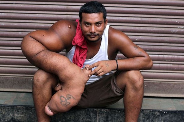 بالصور: هندي وزن ذراعه 20 كيلو ولا تتوقف عن النمو