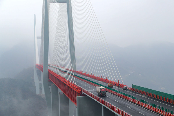 افتتحت الصين، الخميس الماضي أعلى جسر في العالم يرتفع أكثر من 500 متر عن سطح الأرض ويربط بين منطقتين جبليتين في جنوب غرب البلاد، موفرا ساعات من القيادة على السائقين.