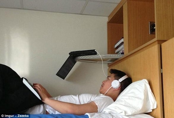 ابتكر هذا الشاب وسيلة مميزة ليتمكن من العمل على جهاز الكمبيوتر وهو مستلق في سريره.