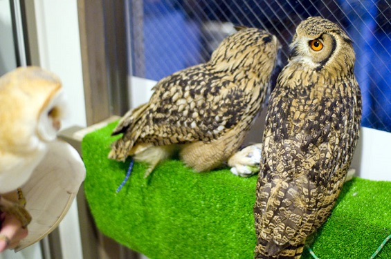 وبالنسبة للبوم وهو من الطيور الجارحة التي تطير بحرية في الليل للصيد، فإن الظروف صعبة على نحو خاص لأن قدراتها البصرية الثاقبة والسمعية الحادة تجعل من الصعب عليها التكيف مع الضوء والضوضاء في المقاهي التي تعج بالزبائن.