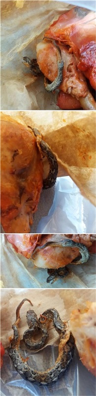 أغلقت بلدية محافظة بارق بمنطقة عسير بالمملكة العربية السعودية، أحد المطاعم بعد عثور مواطن على ثعبان داخل وجبة دجاج اشتراها منه.