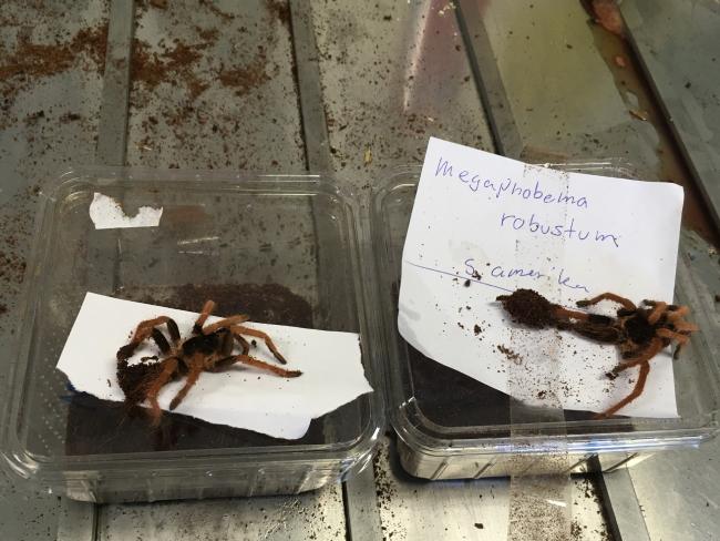وفي صندوق واحد، كانت الثعابين والعناكب موضوعة في عدة عبوات.