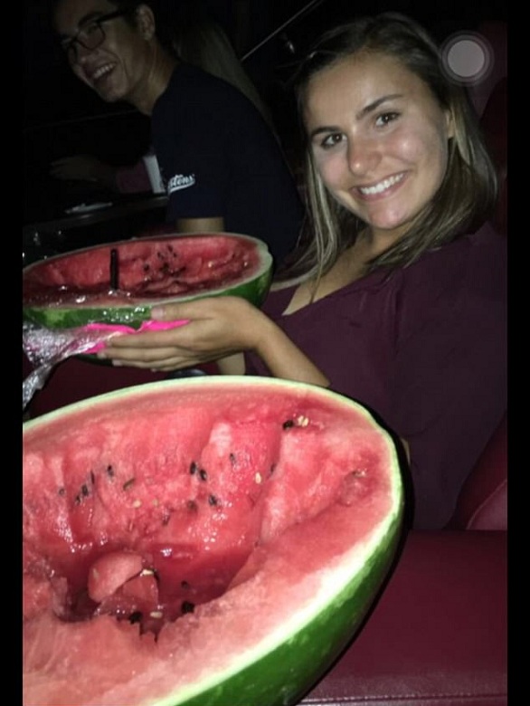 فتيات يتناولن البطيخ داخل صالة السينما أثناء مشاهدة فيلمن المفضل.