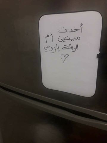 ترك الزوج هو الآخر ورقة ملصقة على الثلاجة وكتب فيها "أخدت ميتين أم الزبالة يا روحي".