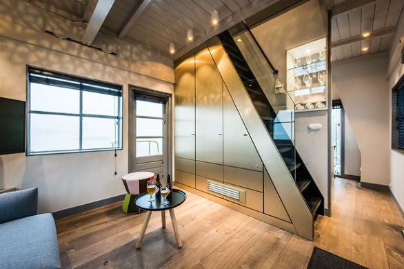 وتحتوي الرافعة على جناح فاخر يمكن للسياح قضاء عطلة لا تنسى فيه، يضم غرفتي نوم وغرفة معيشة كبيرة وحمام منفصل، ناهيك عن النوافذ الكبيرة التي توفر فرصة للنزلاء للاستمتاع بالمناظر الخلابة لواجهة أمستردام المائية. وتبلغ تكلفة الإقامة في هذا الجناح ما يقرب 700 دولار أمريكي لليلة الواحدة.