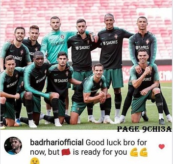 هذا وسارع المقاتل المغربي بدر هاري، الصديق الحميم لرونالدو، إلى التعليق على الصورة، حيث تمنى له حظا موفقا في المونديال لكنه ذكره بأن المنتخب المغربي مستعد له.