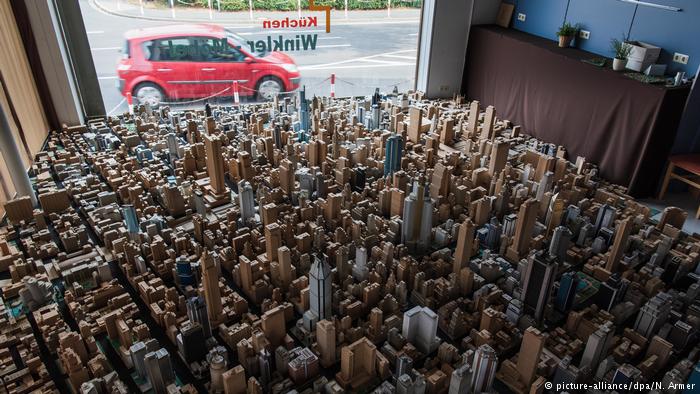 في بعض السنين، نفذ شبيربر 100 مبنى كما يقول، أعلاها تطلب 90 قطعة بناء وبلغ ارتفاعه 70 سنتمترا. تماثل المدينة - الحلم في الحقيقة مركزا مدنيا مثل نيويورك أو شيكاغو، كما أنّ فيها ملامح كثيرة من مدينة المال فرانكفورت أم ماين التي ولد فيها كارل شبيربر.