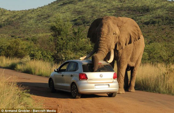هل شاهدت فيلاً يحك ظهره بسقف سيارة؟