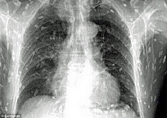 وكان الرجل ذهب إلى الطبيب يشكو من ألم في المعدة وحكة في الجلد، وكشفت الأشعة أن جسمه بالكامل أصيب بعدوى الدودة الشريطية .