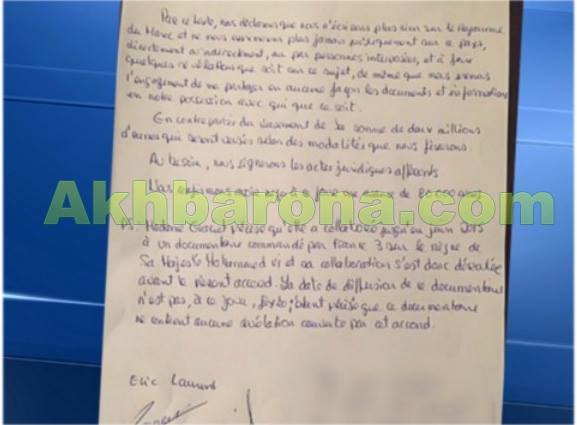 حصريا : هذه الوثيقة الخطية التي تثبت تورط الصحفيين الفرنسيين في ابتزاز الملك محمد السادس و هذا هو مضمونها