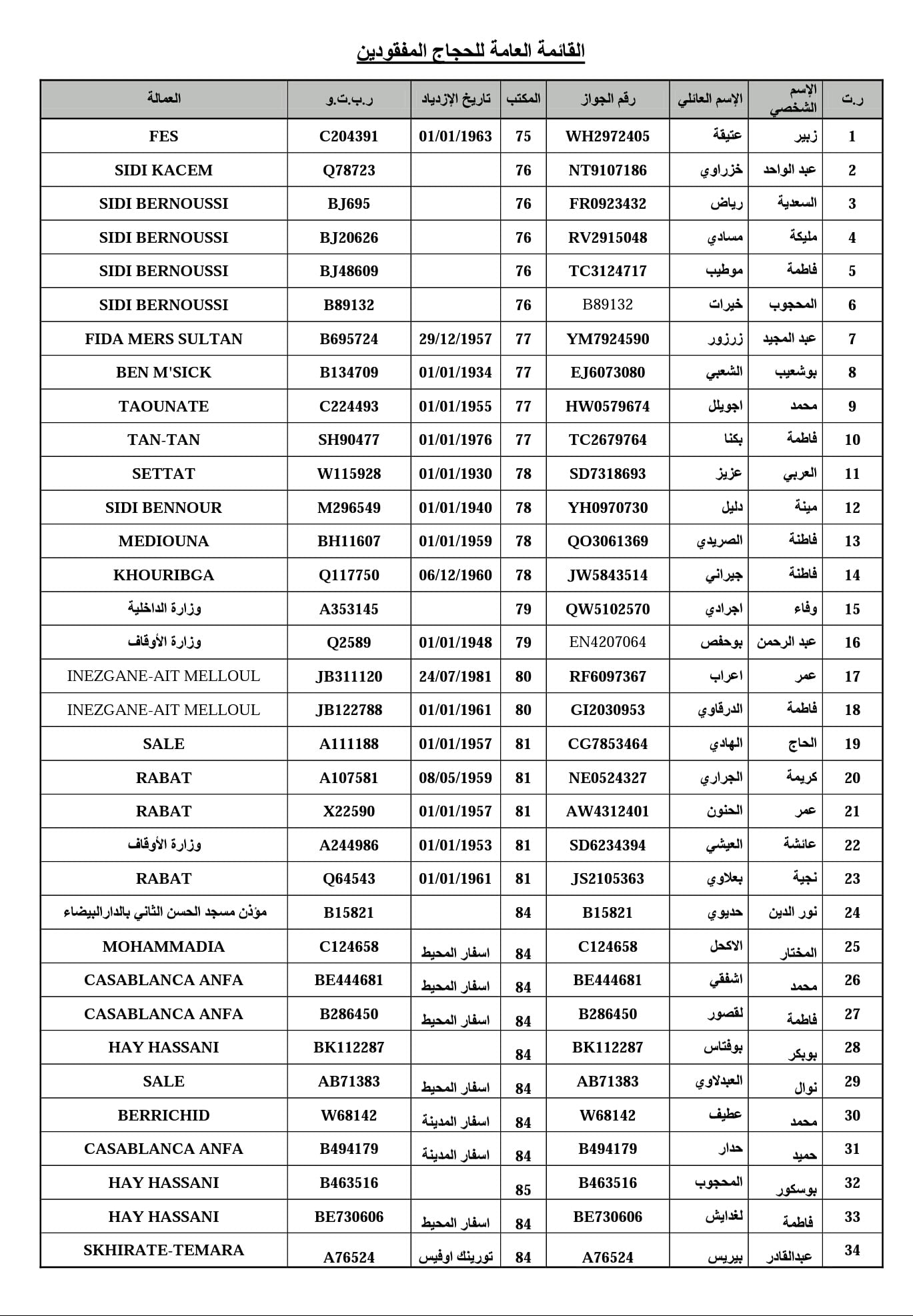 نشرت وزارة الخارجية والتعاون، اليوم الاثنين، لائحة بأسماء الحجاج المغاربة المتوفين، المصابين و المفقودين في حادث “تدافع منى” الذي وقع الخميس الماضي وأدى إلى وفاة 769 شخصا.