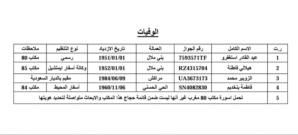 هذه لائحة أسماء المغاربة المتوفين والمصابين والمفقودين في حادث “تدافع منى”