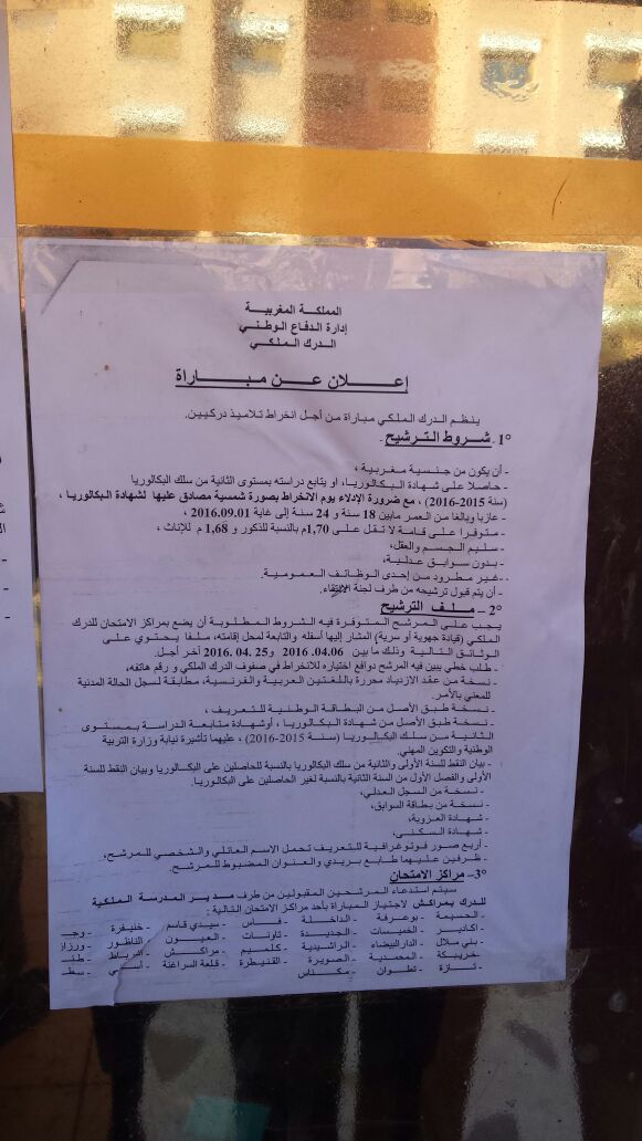 وأضاف المصدر الحقوقي ل"أخبارنا" أن الاعلان الذي عممته ادارة الدركي بالمغرب والمعلق على أبواب سريتها -انظر النسخة - لا يتضمن هذا الشرط ولم يذكره بتاتا ، وهو ما جل المرشحين الحاصلين على أقل من 12/20 في المعدل ،يصابون بخيبة أمل خصوصا وأن أغلبهم جمعوا ملف الترشح ، وقدموا من مناطق بعيدة وعانوا مشاق الطريق ، كما اعتبروا هذا الشرط غير عادل لأنه يضرب تكافء الفرص بين جميع شرائح المرشحين.