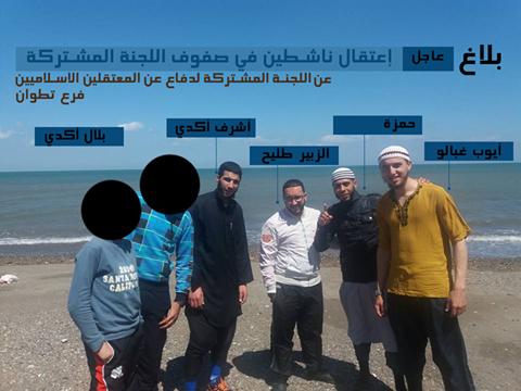 و ذكرت اللجنة المشتركة للدفاع عن المعتقلين الإسلاميين فرع تطوان على صفحتها بموقع التواصل الإجتماعي الفايسبوك، أسماء المعتقلين الخمسة مرفوقة بصورهم.