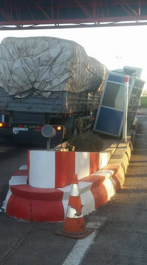 عاوتاني.. شاحنة تقتحم شباك أداء بالطريق السيار و هذه التفاصيل (صور)