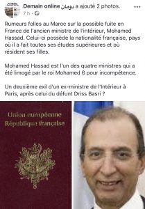 المصدر ذاته أشار الى انتشار اشاعات بالمغرب حول توجه حصاد الى فرنسا بعد قرار اعفائه من طرف الملك .