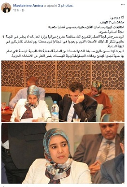 وواصلت ماء العينين تدوينتها بالتأكيد على أن : " علاقة إنسانية متميزة " تجمعهما مشيرة إلى أن وهبي: " صرح اليوم في لجنة العدل والتشريع أثناء مناقشة مشروع ميزانية وزارة العدل أنه لا يجلس في اللجنة إلا إلى جانبي ،نتذكر كل أولئك الأصدقاء الذين لم يعودوا في اللجنة الذين جمعتنا بهم لحظات نقاش كبير في الولاية السابقة ".