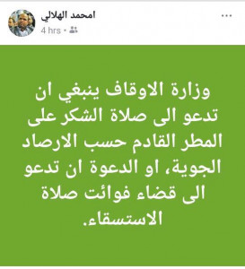 قيادي في التوحيد والإصلاح يسخر من الدعوة لصلاة الاستسقاء (صورة)