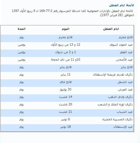 و وفق لائحة أيام العطل بالإدارات العمومية كما حددها المرسوم رقم 2-77-169 لـ 9 ربيع الأول 1397 الموافق لـ 28 فبراير 1977، فإن الموظفين بالإدارات العمومية يحصلون خلال مناسبة رأس السنة على يوم واحد وليس يومين وفق ما تداولته صفحات فايسبوكية.