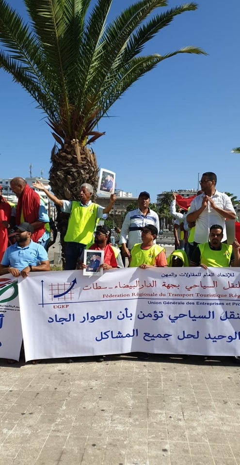 قامت الفيدرالية الوطنية للنقل السياحي للاتحاد العام للمقاولات والمهن، بتنظيم وقفة احتجاجية، اليوم الثلاثاء أمام مقر ولاية جهة الدار البيضاء سطات.