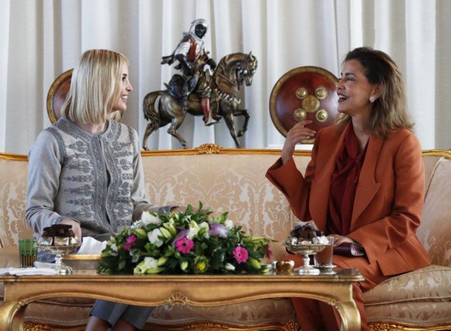 ولدى وصولها إلى المطار، وجدت نجلة الرئيس ترامب في استقبالها صاحبة السمو الملكي الأميرة للا مريم، حيث قُدم لها التمر والحليب وفقا لعادات وتقاليد الاستقبال.