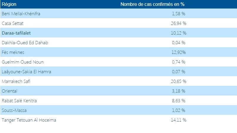 الوزارة وبعد أن حجبت في مناسبات سابق الشق المتعلق بالتوزيع الجهوي للحالات، حولت في اليومين الماضيين عدد الإصابات من أرقام إلى نسب مئوية.